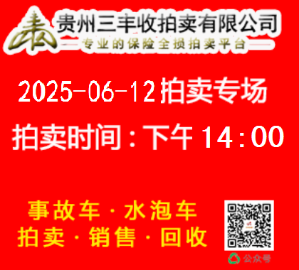 貴州三豐收拍賣有限公司網絡拍賣于2025年05月19日下午14點00準時開拍 請需要拍賣車輛的會員 通過二維碼繳納拍賣保證金或者致電我司繳納保證金 0851-86711666 18275321810 13378515056 18268322089 人工審核
